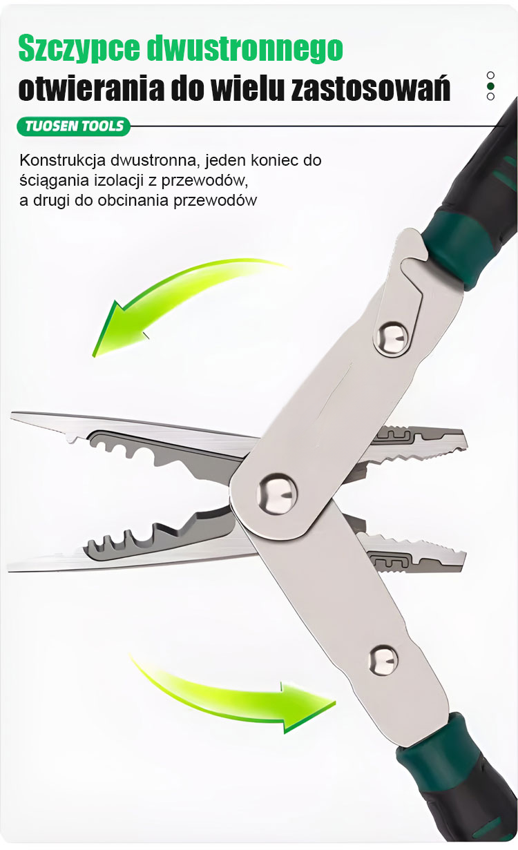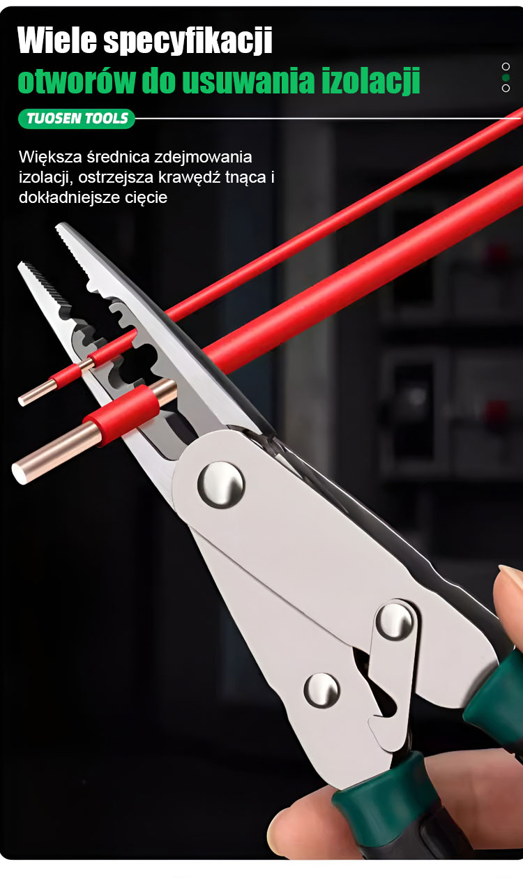 Dwustronne, odkształcalne szczypce łączące w sobie cięcie i zdejmowanie izolacji zostały zaprojektowane z myślą o łatwym poradzeniu sobie z różnymi problemami związanymi z naprawami oraz poprawie wydajności pracy.