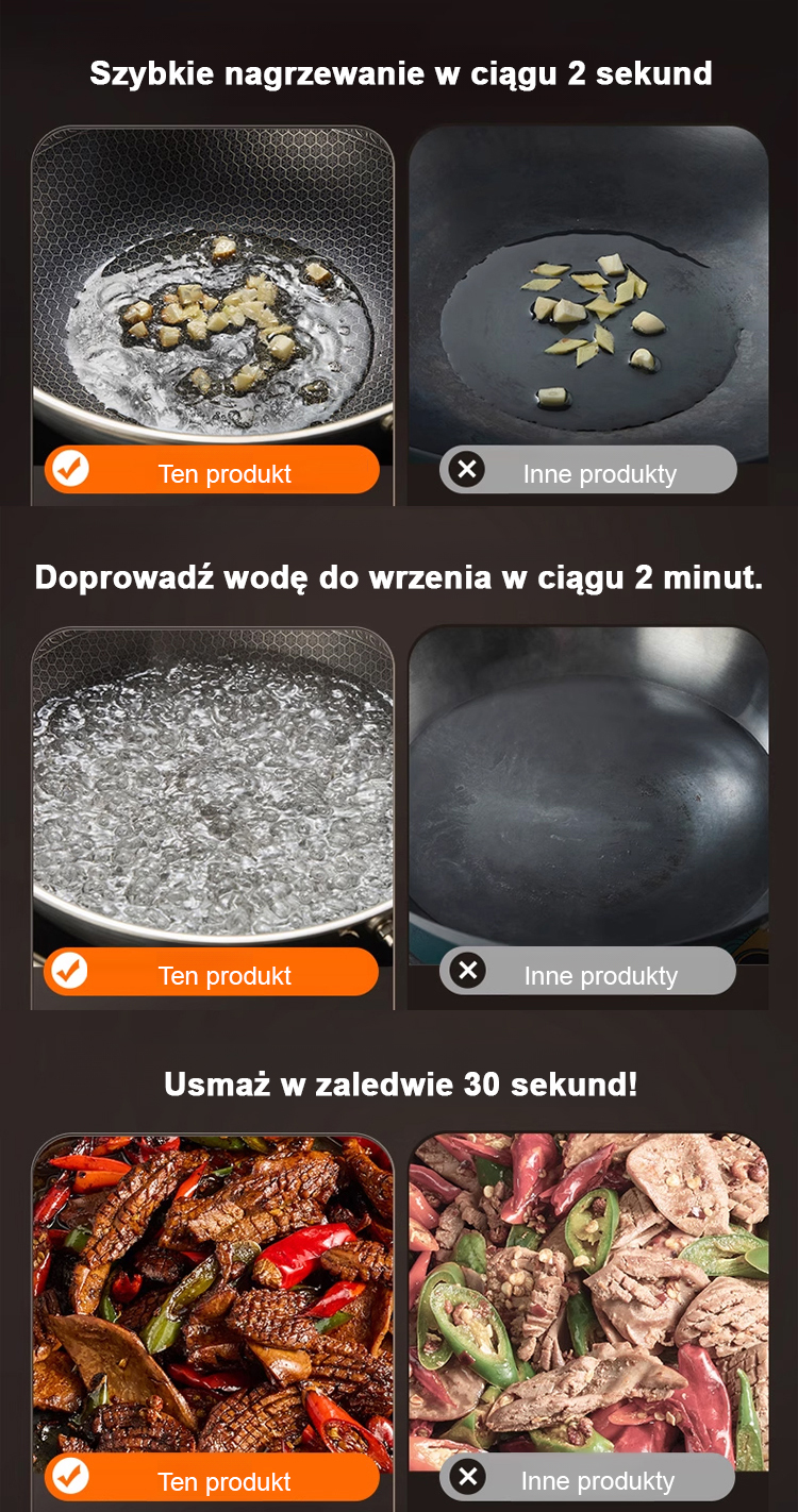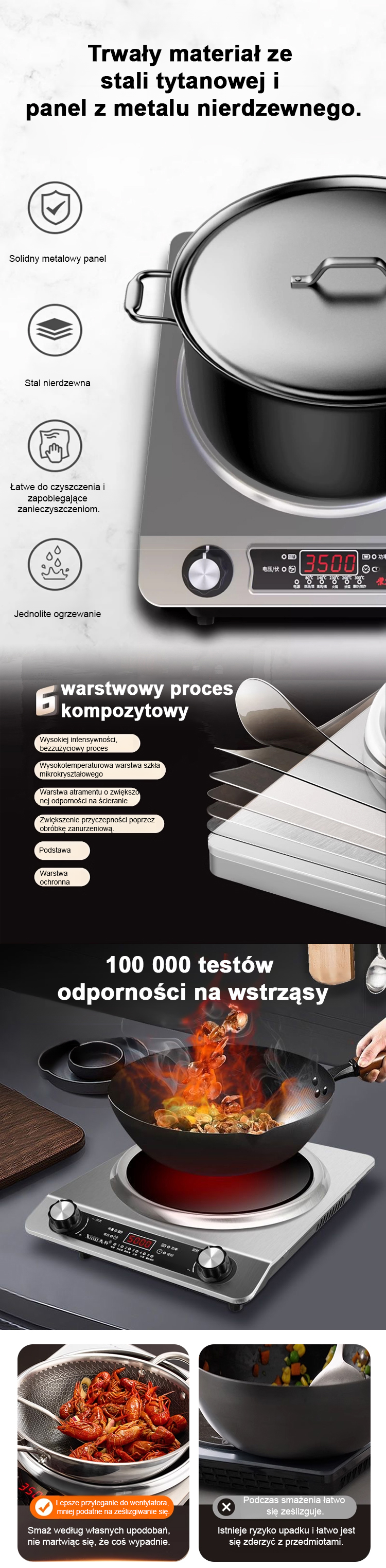 Ta szybko nagrzewająca się, wklęsła kuchenka indukcyjna o dużej mocy oferuje profesjonalne doznania kulinarne. ⚡Jej innowacyjna, wklęsła konstrukcja zapewnia równomierne nagrzewanie i lepszą wydajność gotowania. Wydajna funkcja szybkiego nagrzewania i inteligentny system kontroli temperatury umożliwiają stosowanie różnych metod gotowania. Niezależnie od tego, czy smażysz, smażysz, czy dusisz, kuchenka z łatwością sobie z tym poradzi.