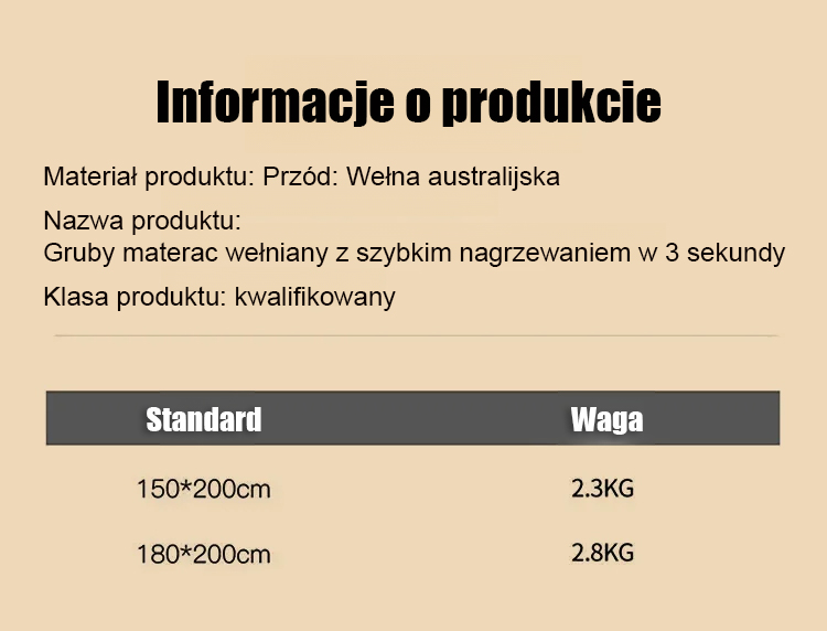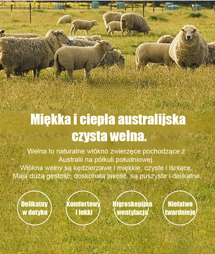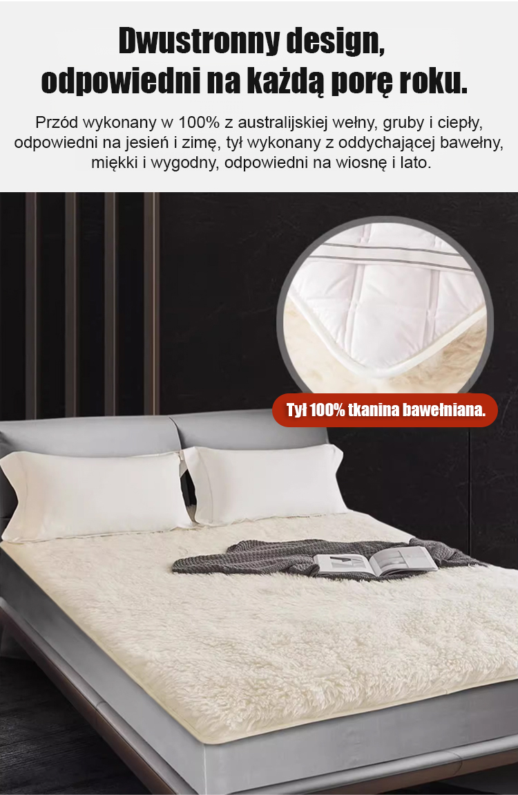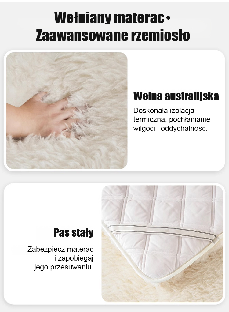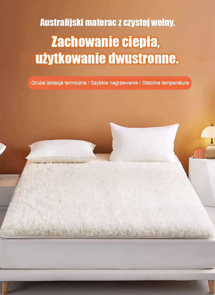 🌟Australijski materac wełniany dla luksusowego i komfortowego snu! ✨Wypełnienie z wysokiej jakości wełny zapewnia wyjątkowe ciepło i miękkość w dotyku. Oddychająca konstrukcja zapewnia doskonałą regulację temperatury, dzięki czemu materac nadaje się do całorocznego użytkowania.