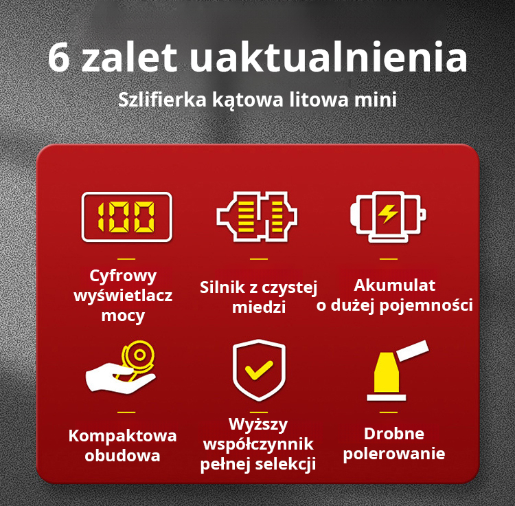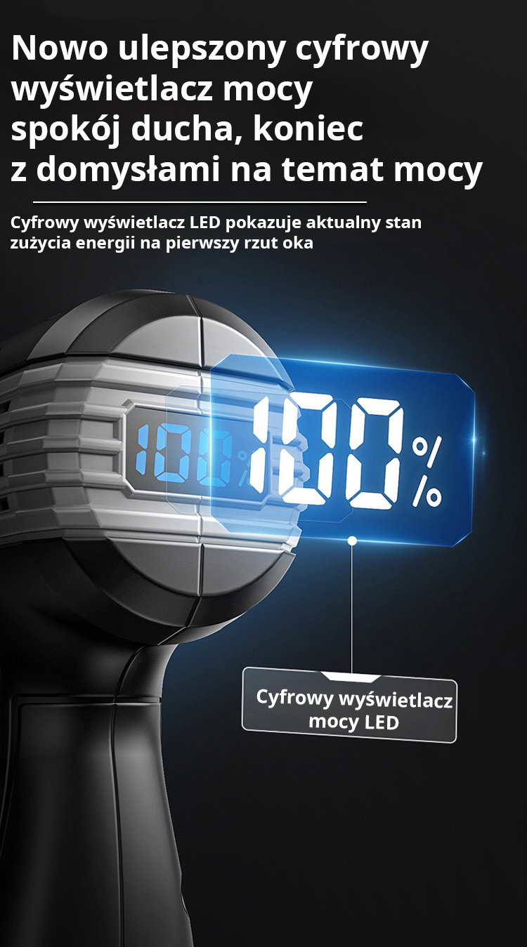 Łącząc inteligentną technologię z doskonałym wykonaniem, urządzenie to posiada cyfrowy wyświetlacz zapewniający wygodniejszą i precyzyjniejszą obsługę. Wytrzymała i trwała obudowa gwarantuje stabilne użytkowanie w różnych warunkach, zapewniając doskonałą odporność na kurz i długotrwałą moc wyjściową. Jego wszechstronna konstrukcja doskonale sprawdzi się w pracy z różnymi materiałami i przy różnych zadaniach.