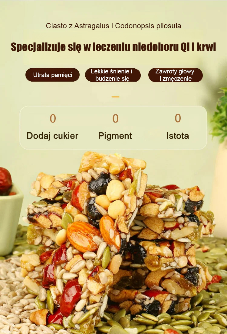 🌿 Ośmioziarnisty placek z żeń-szenia i astragalusa 💪 Wzmacnia i odżywia, nie podnosząc poziomu cukru 🚫 Bez cukru, zdrowy i syty