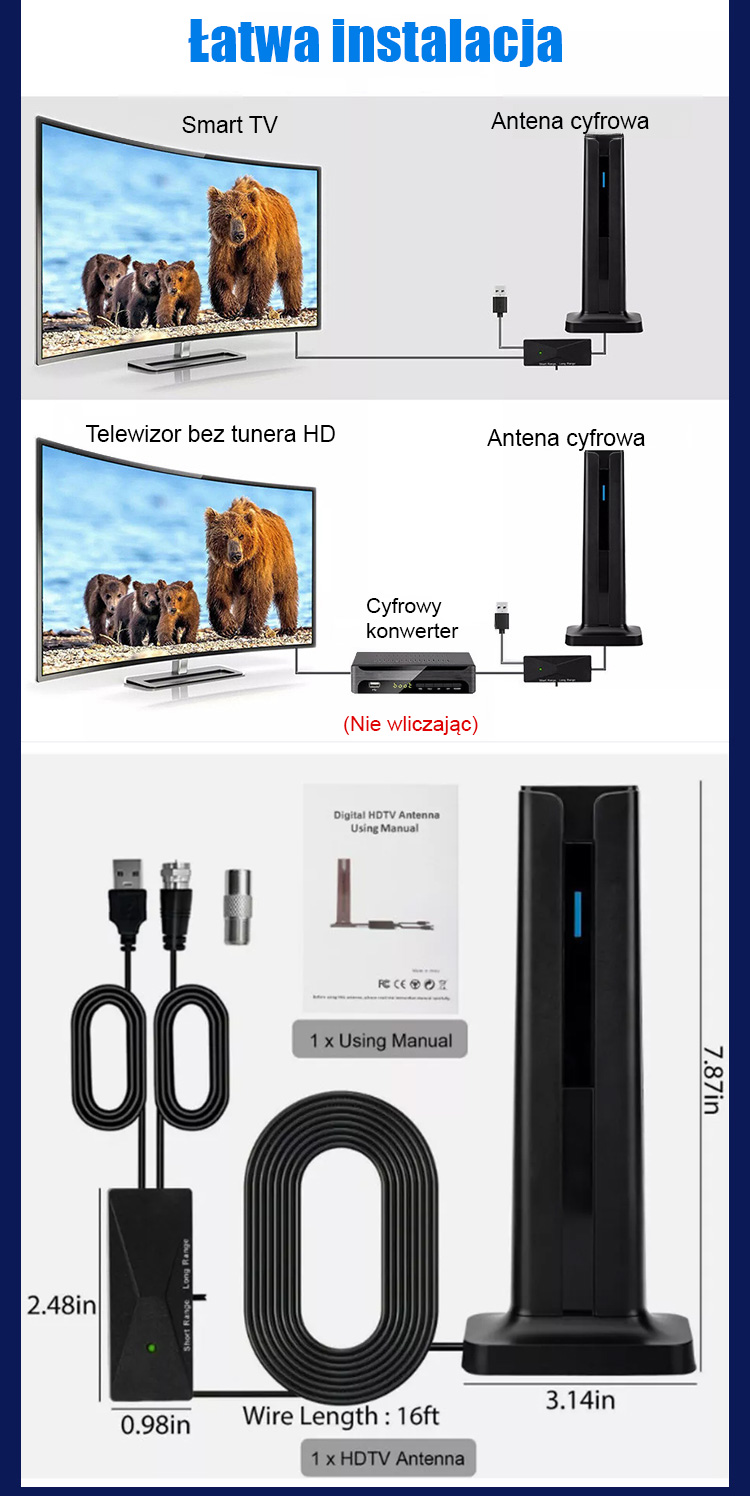 🏠Jednorazowy zakup, dożywotni dostęp do kanałów w wysokiej jakości, szybka instalacja bez narzędzi, możliwość zamontowania na ścianie wewnątrz / na zewnątrz✨Super mocny odbiór sygnału na dużych odległościach, wsparcie dla wielu kanałów, kompatybilność nawet ze starymi telewizorami