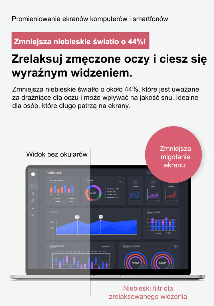 ✨Filtrują 44% niebieskiego światła, łagodzą zmęczenie oczu, przepuszczalność światła ≥93% ✅ Automatyczne dostosowanie ostrości do bliży i dali, bez konieczności częstej wymiany okularów, szeroki bezramkowy widok