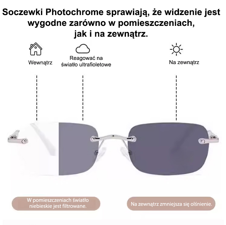 ✨Okulary przeciwsłoneczne z automatyczną zmianą koloru, ultralekkie bez oprawek, dostosowane do 0-1000 stopni