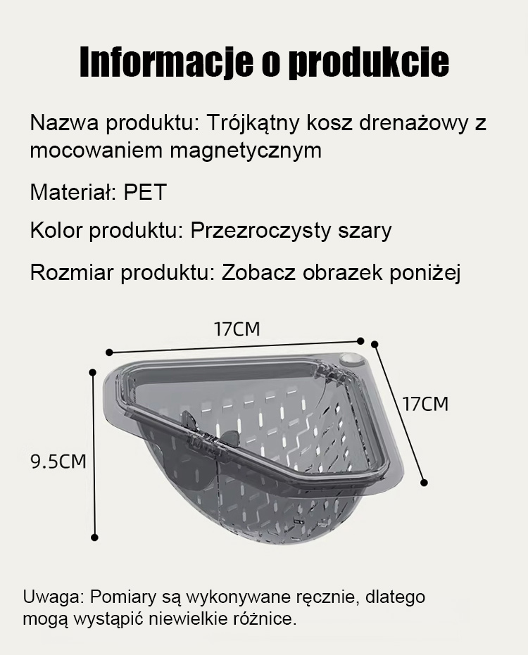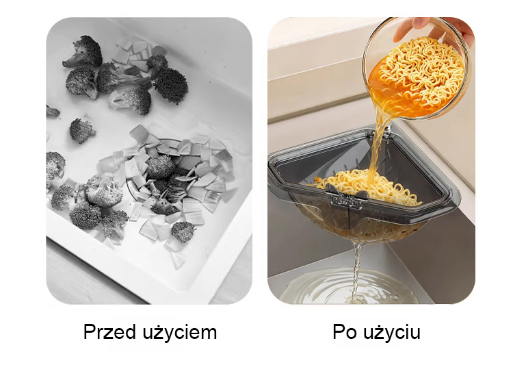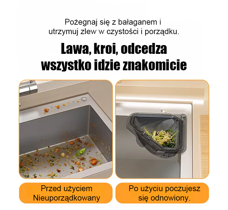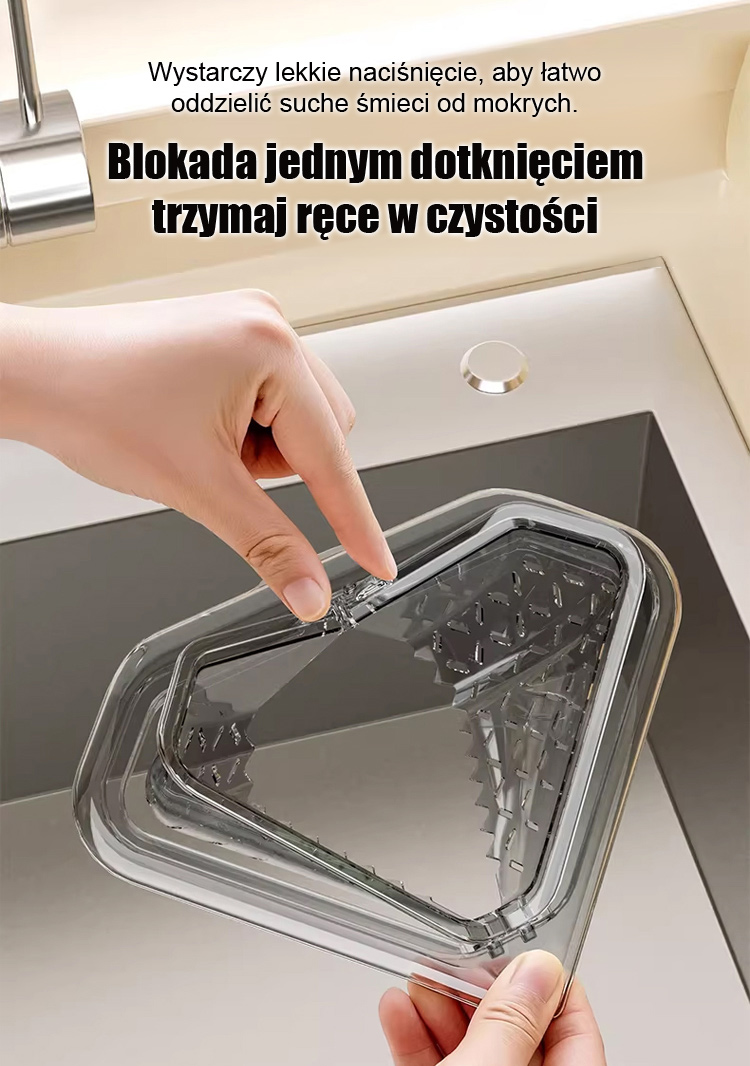 💡 Trójkątny kosz ociekowy koncentruje zanieczyszczenia, separacja mokrego i suchego zapobiega zatykaniu 🛠️ Mocowanie magnetyczne bez wiercenia, łatwe przyczepianie bez odpryśnięcia, gładki materiał PET zapobiegający przywieraniu, z przejrzystym designem