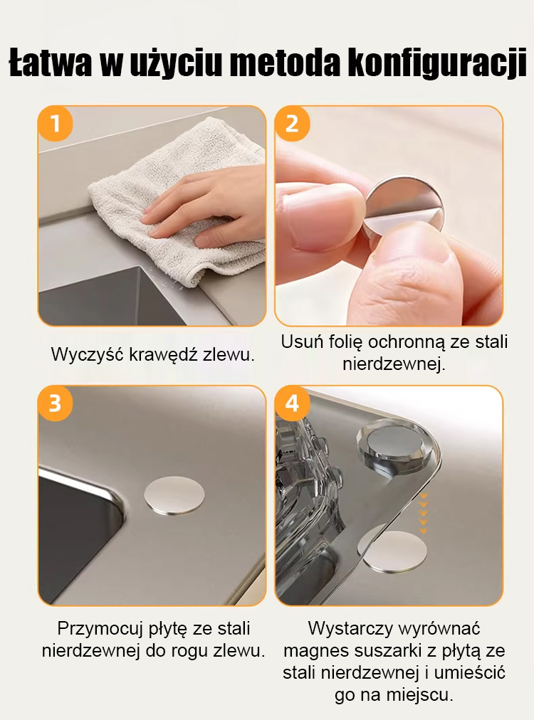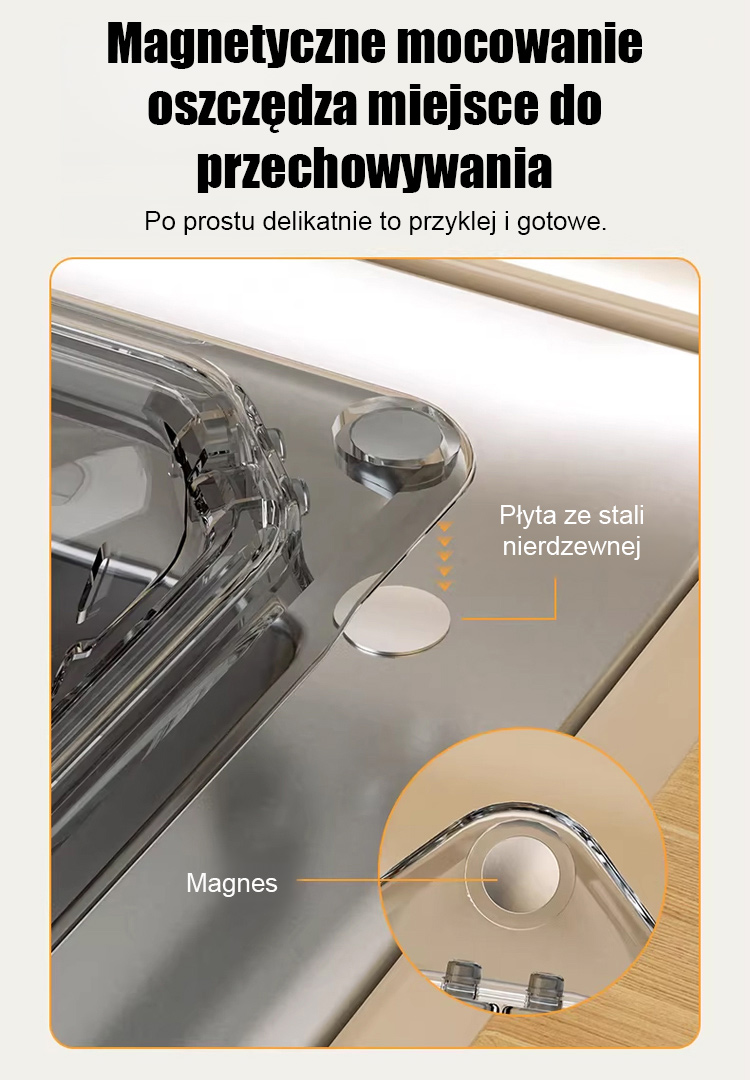 ✨ Montaż magnetyczny bez wiercenia, trwały materiał PET łatwy w czyszczeniu, separacja mokrego i suchego bez zajmowania miejsca