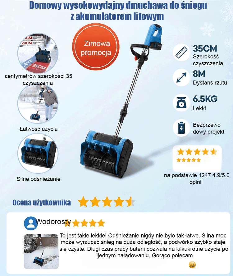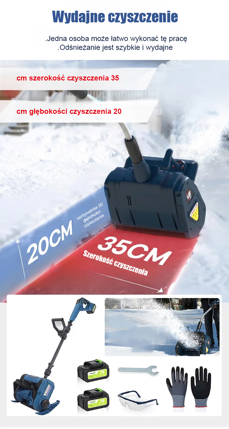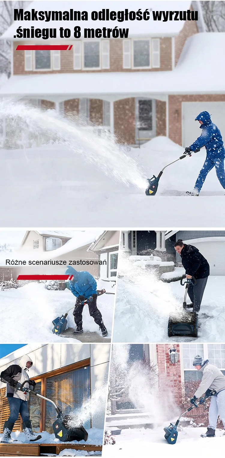 ✅ Głębokość czyszczenia 20 cm + zasięg wyrzutu śniegu 8 metrów, spiralna technologia odśnieżania zapewnia wysoką skuteczność ❄️ Bezprzewodowy, akumulatorowy design, swobodne poruszanie się po podwórku i podjeździe, łatwe usuwanie grubych warstw śniegu
