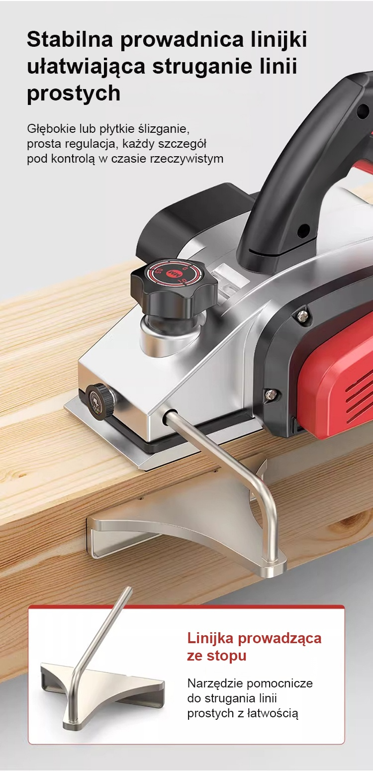 Ten strugarka elektryczna została zaprojektowana do domowej obróbki drewna i charakteryzuje się dużą mocą oraz precyzyjnymi funkcjami regulacji. Niezależnie od tego, czy chodzi o wygładzanie powierzchni, czy przycinanie krawędzi, pozwala ona na wydajne wykonywanie prac, ułatwiając różnorodną obróbkę drewna w domu i zapewniając profesjonalne wsparcie dla projektów DIY.
