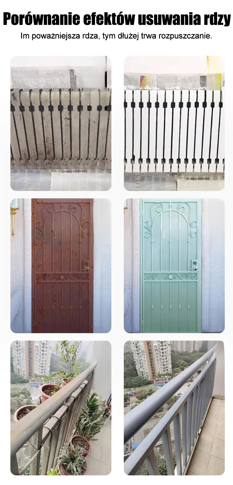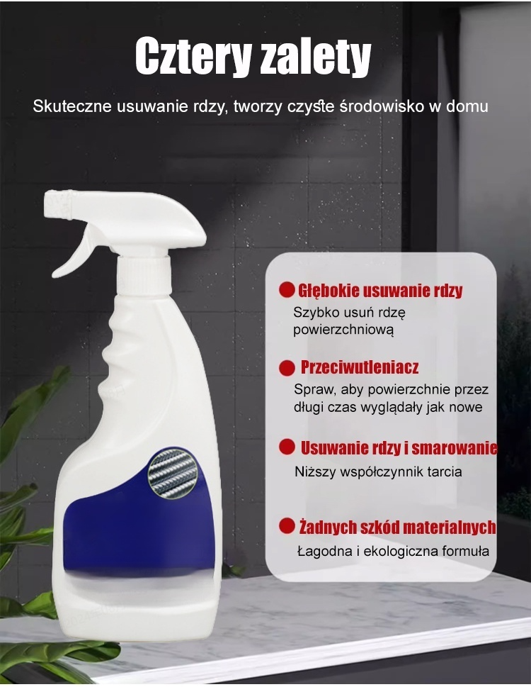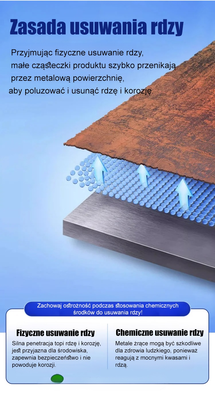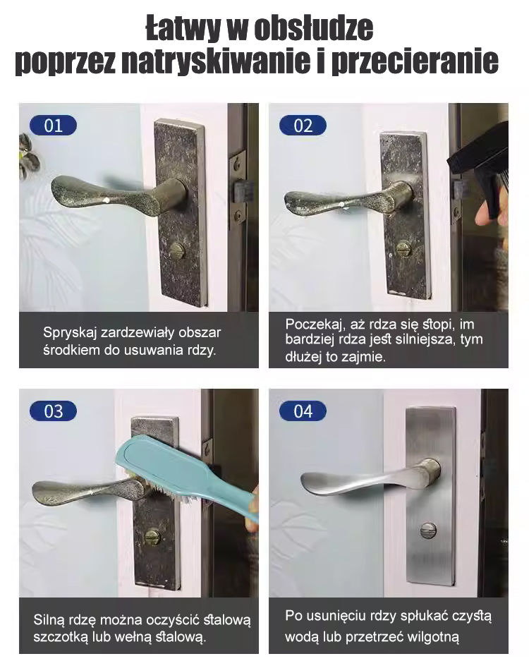 🔥Zaprojektowany do szybkiego i skutecznego usuwania uporczywej rdzy z powierzchni metalowych. Jego wyjątkowa siła penetracji dociera głęboko w warstwę rdzy, szybko przywracając stali pierwotny połysk. ✨ Łatwy w użyciu, nie wymaga skomplikowanych procedur, natychmiast przywraca połysk zardzewiałym częściom. Jego przyjazna dla środowiska formuła gwarantuje bezpieczeństwo i nietoksyczność, co czyni go idealnym rozwiązaniem do napraw domowych i zastosowań przemysłowych.