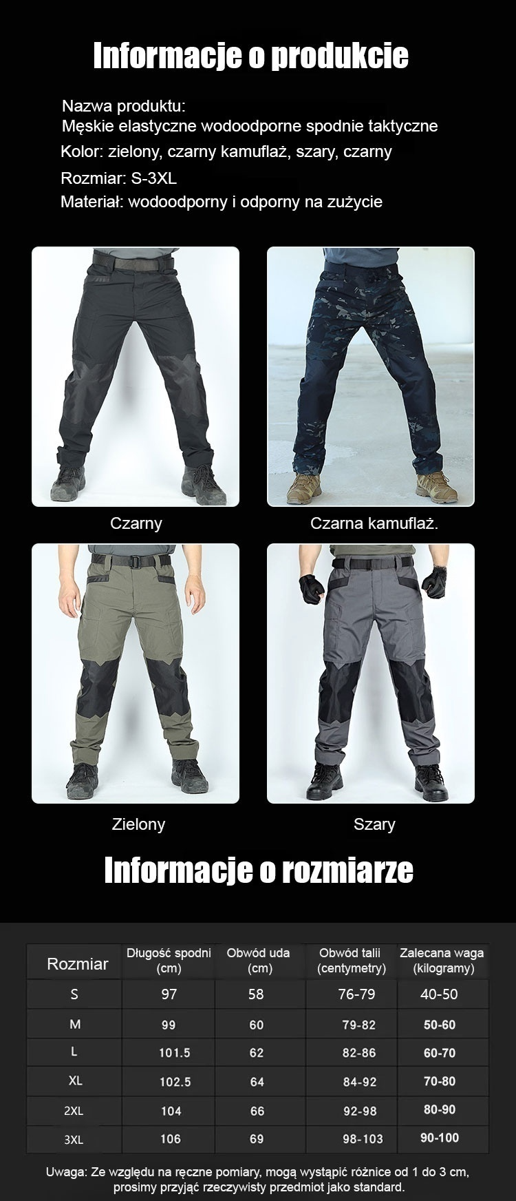 💪Wysokowydajne spodnie taktyczne, 🌧️wygodna, elastyczna i wodoodporna konstrukcja, która sprawdzi się w zmieniających się warunkach