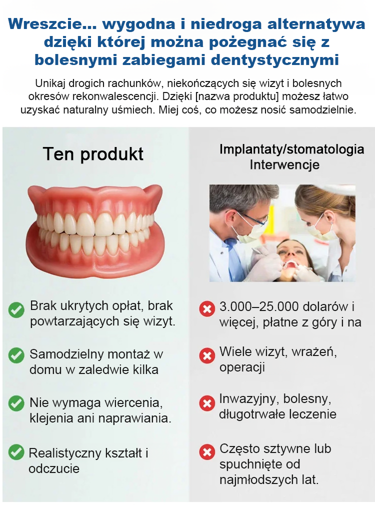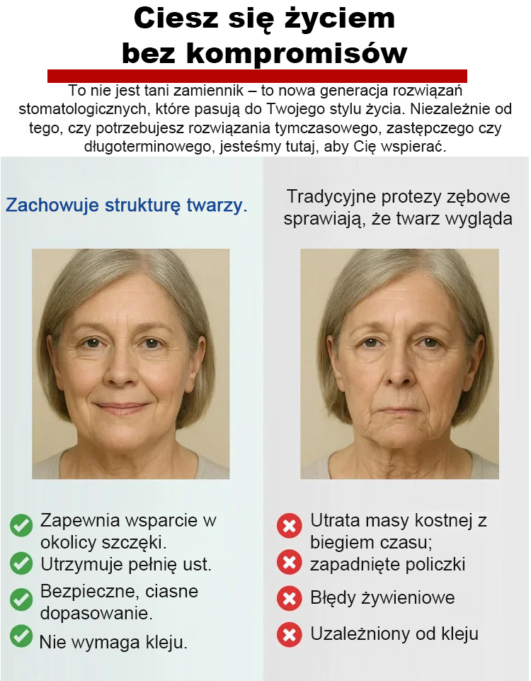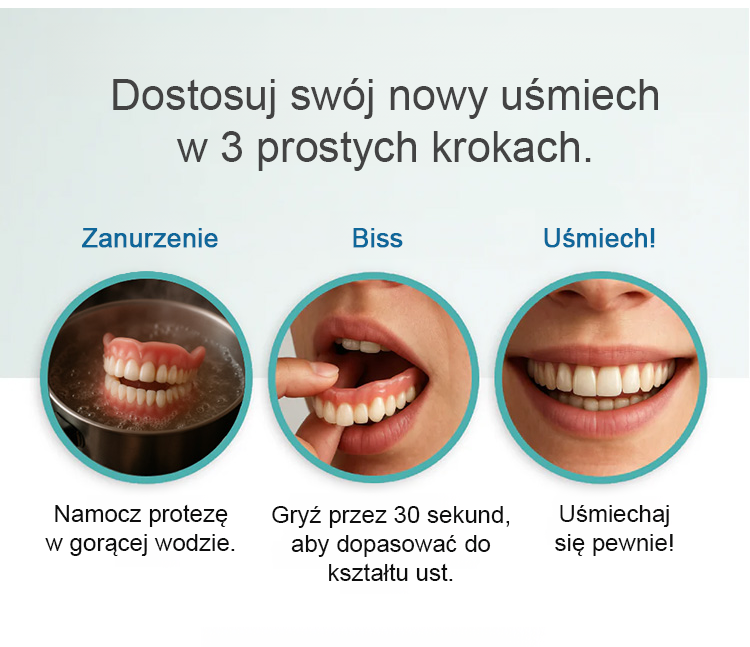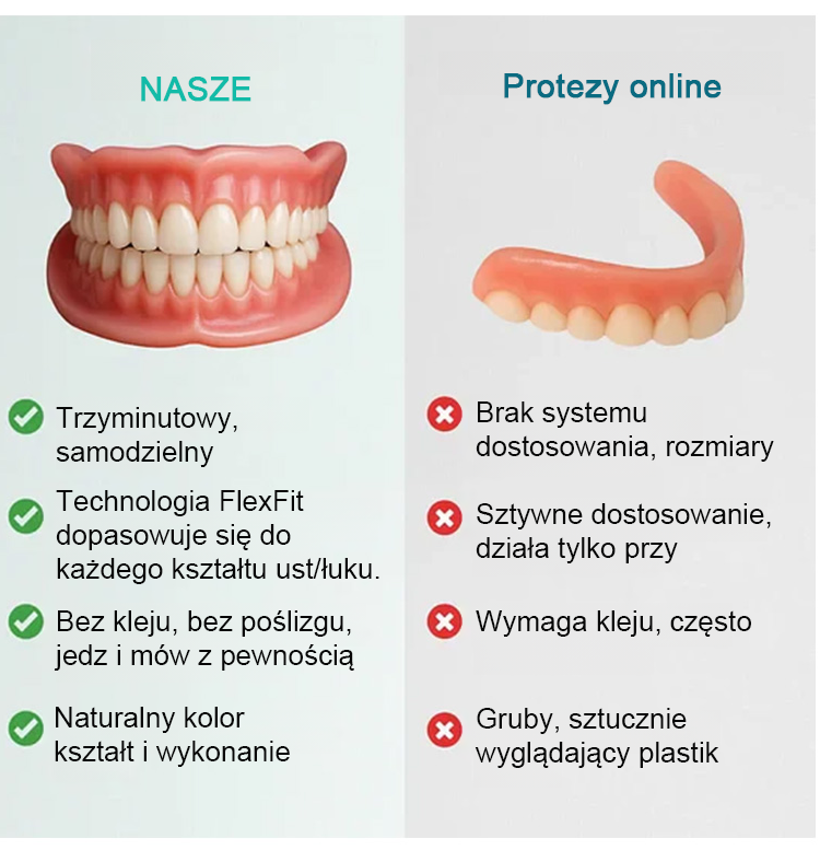 ✨Dostosowany do struktury Twoich kości szczękowych, nie wymaga kleju