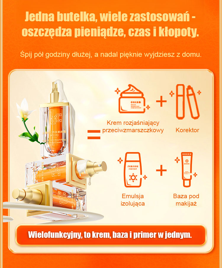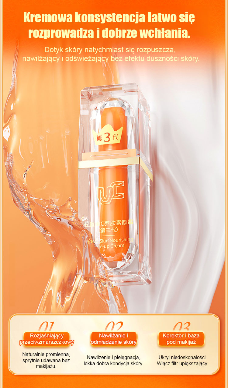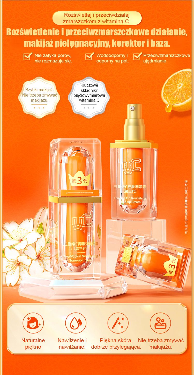 💖Wysoka koncentracja 5-krotnej ekstraktu z witaminy C, natychmiast rozjaśnia kolor skóry. Lekki makijaż, nie ciężki, nawet po zmyciu makijażu skóra nadal promienna ✨ Wystarczy delikatnie nanieść, wyrównać kolor skóry. Wbudowany efekt rozmycia, jak naturalny, piękny stan skóry