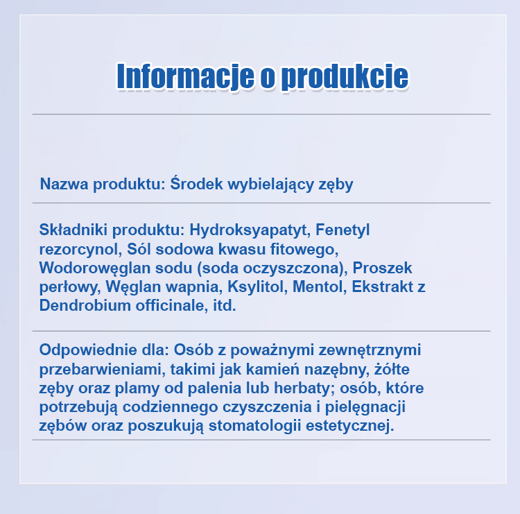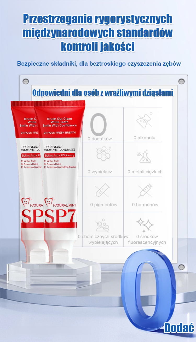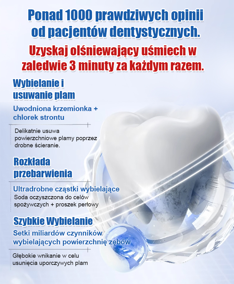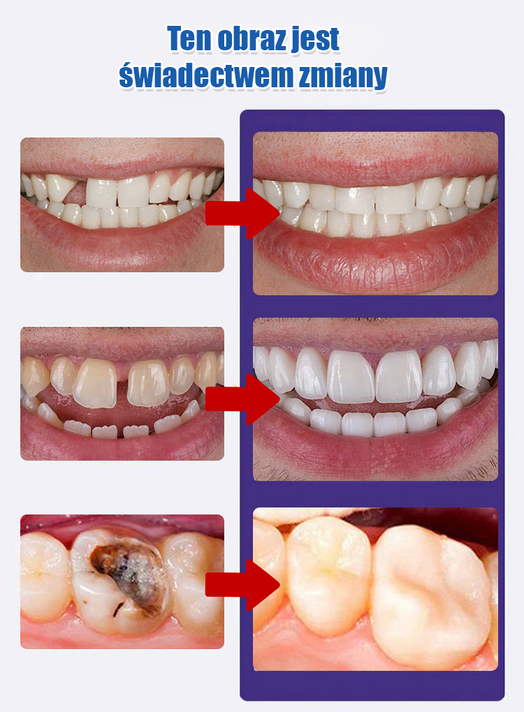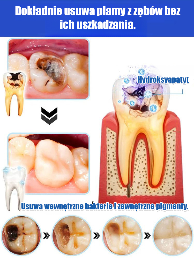 ✨ Probiotyczne mikrogranulki delikatnie rozkładają plamy po kawie i papierosach, nie uszkadzając szkliwa