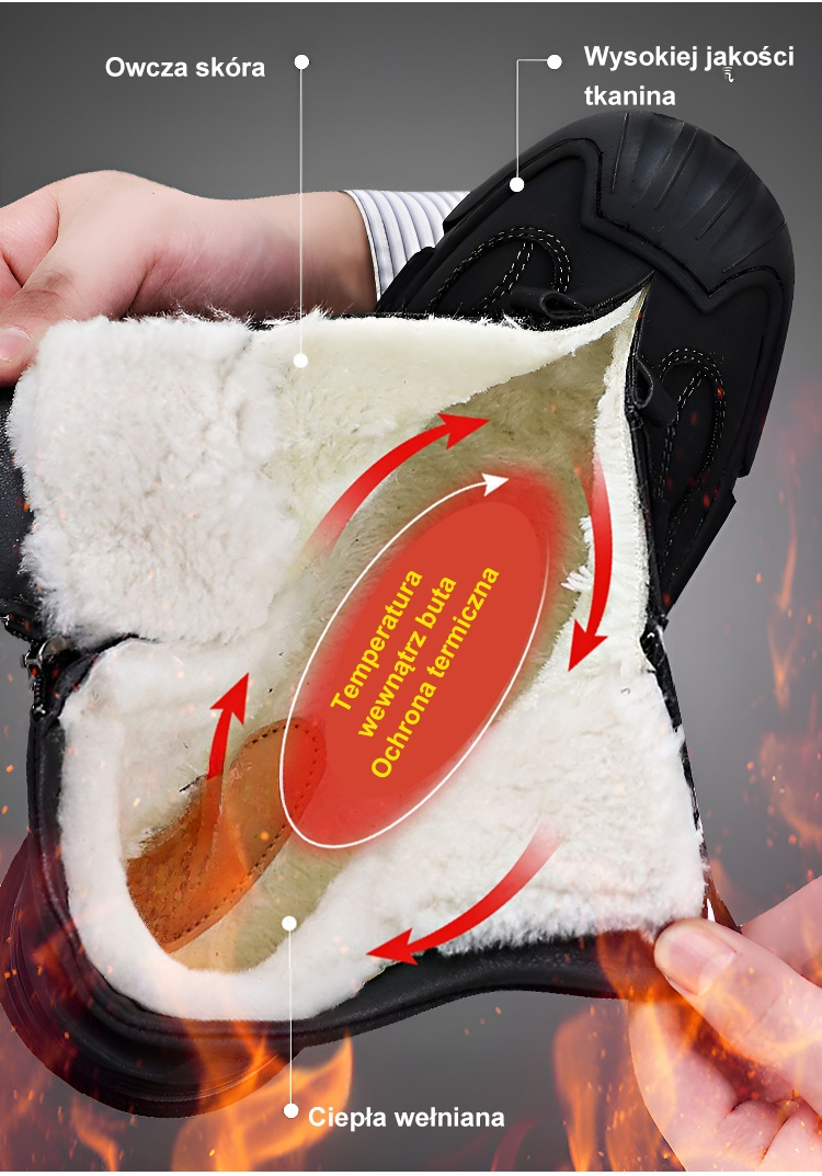 ✨ Rozwiązanie problemu zimowych, niekomfortowych butów - ocieplenie wewnątrz + lekka konstrukcja, zapewniająca ciepło bez przegrzania ❄️ Rozłożenie nacisku na stopę, bez zmęczenia podczas długiego chodzenia i stania