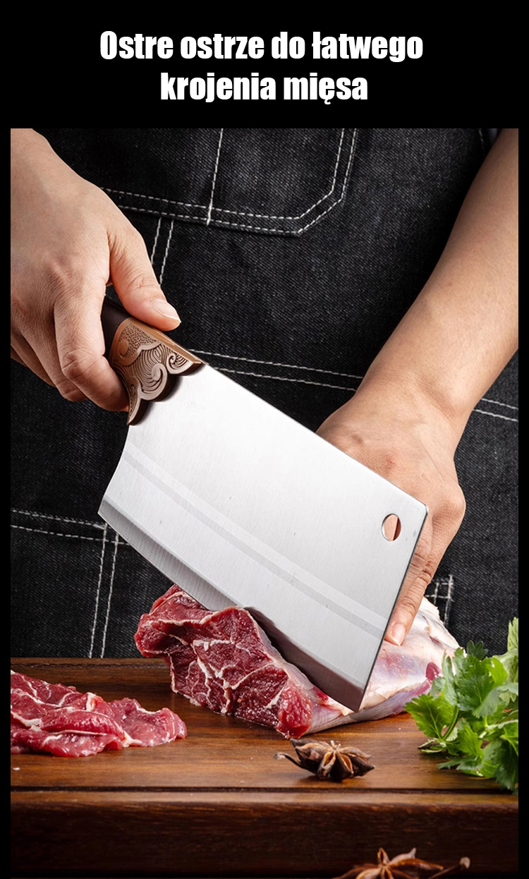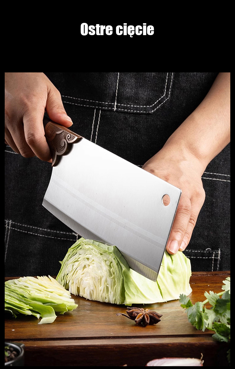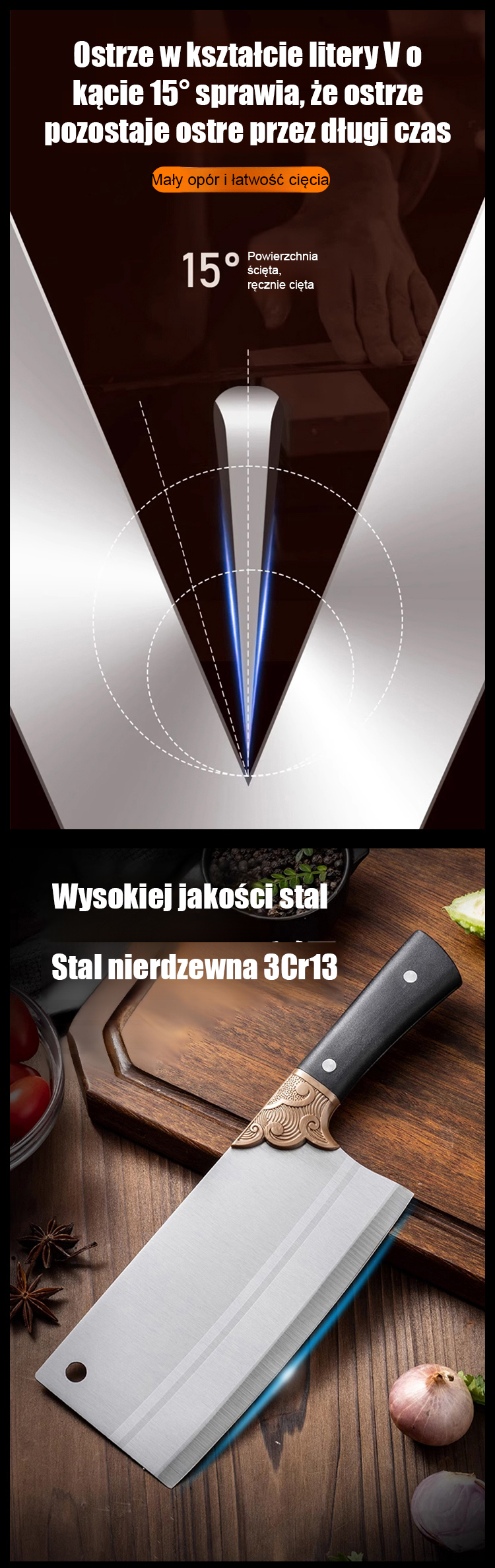 ✅Ręcznie szlifowany nóż o ostrzu V pod kątem 15 stopni, niezwykle ostry, długo zachowujący ostrość, lekki i niezmęczący dłoni podczas krojenia i siekania