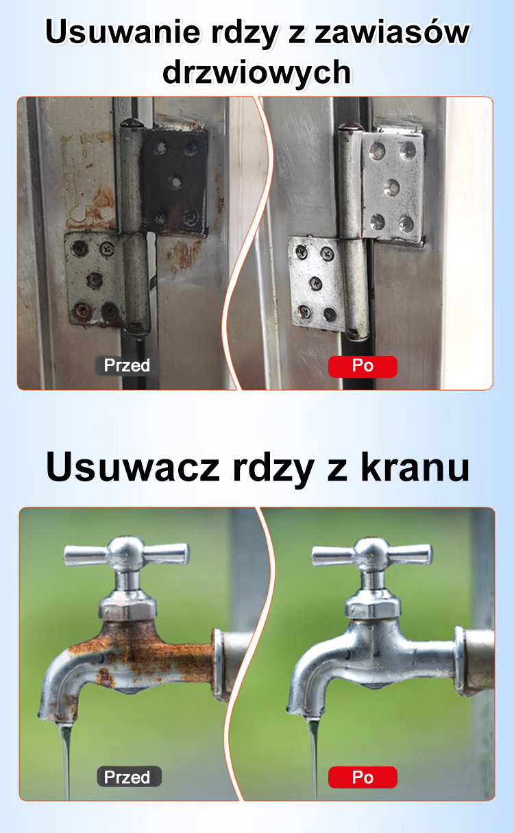🛠️ Wystarczy jeden spray: rdza sama się rozpuszcza, nie uszkadza materiału, nie drażni skóry! 🌟