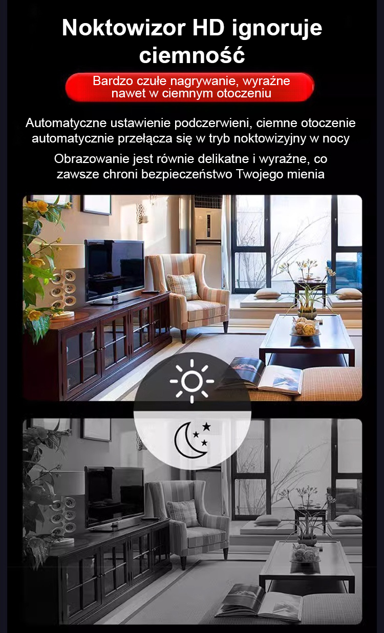 🛡️Nie potrzebuje Wi-Fi, włóż kartę SIM i oglądaj na żywo z każdego miejsca! Noc jak dzień! 🏠Noktowizor HD + detekcja ruchu, natychmiastowy alarm przy każdym ruchu!