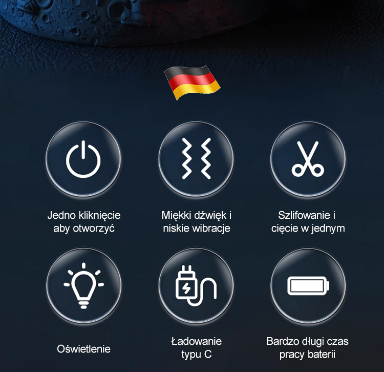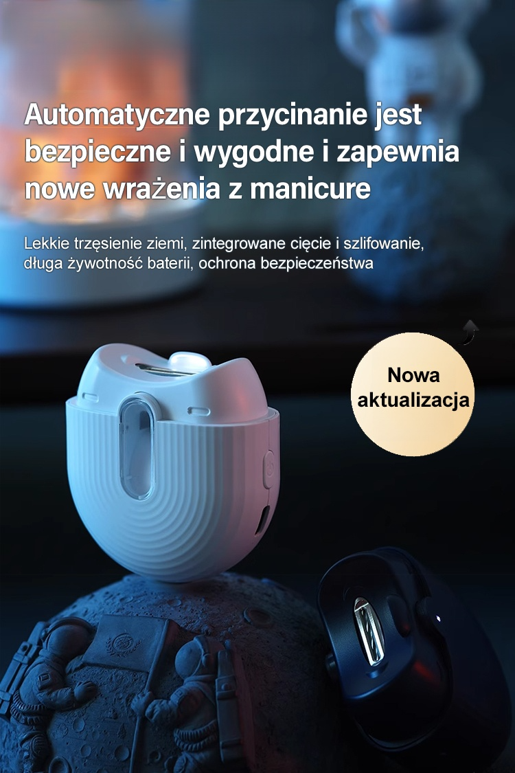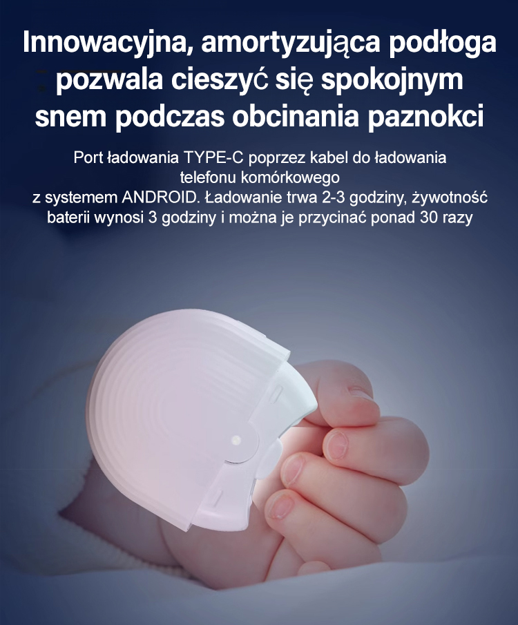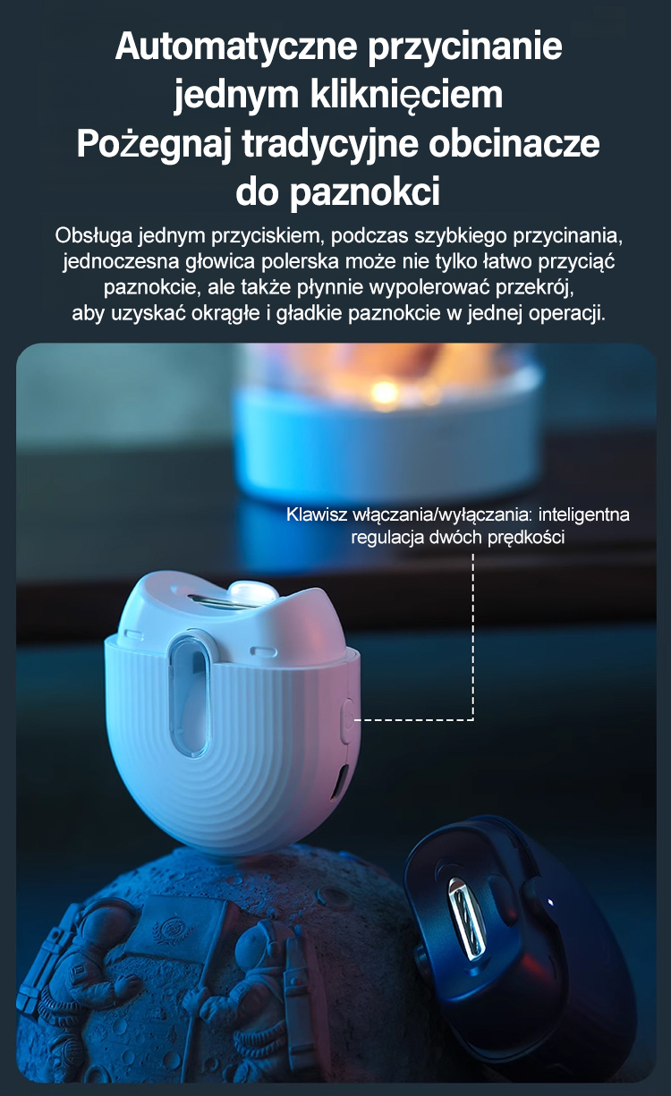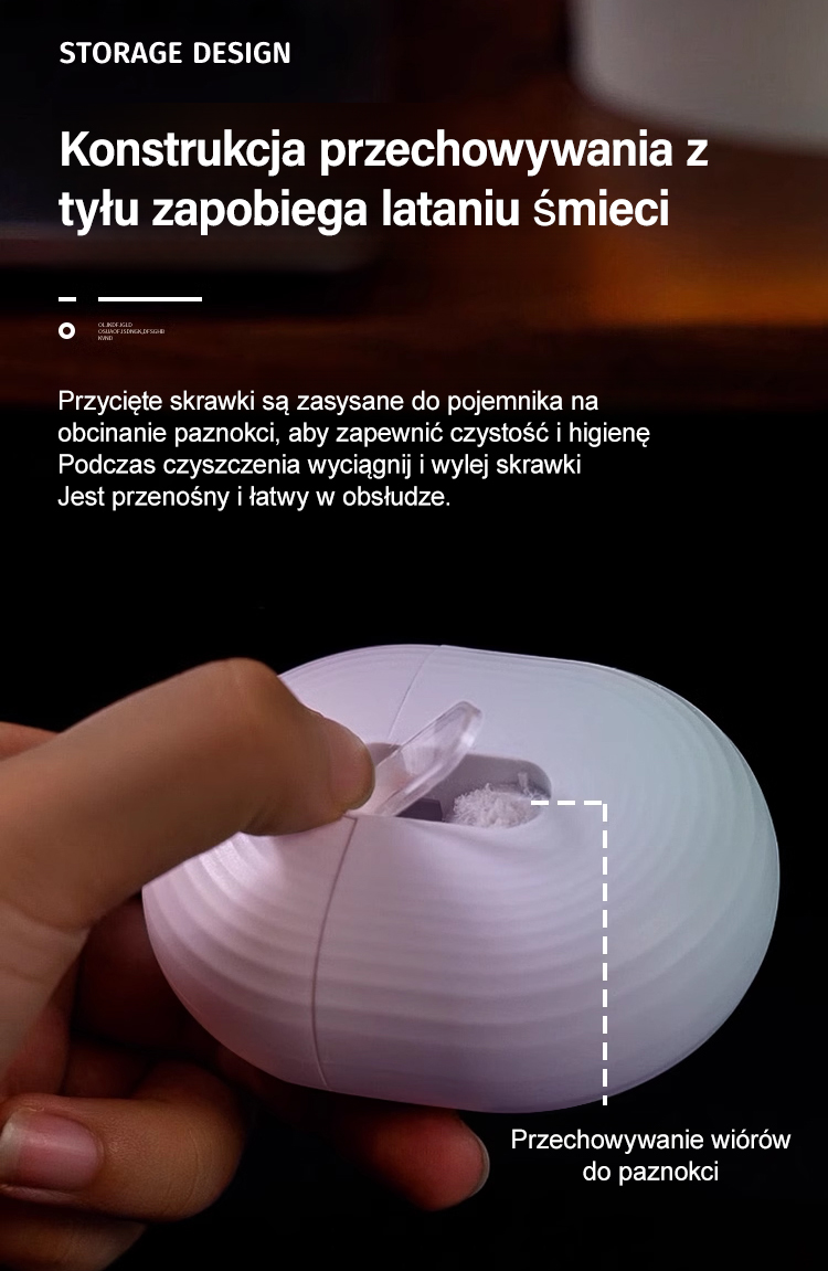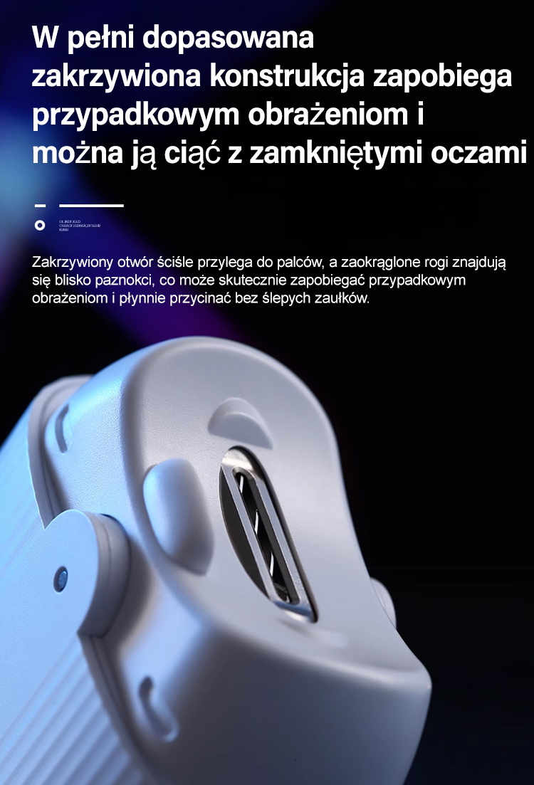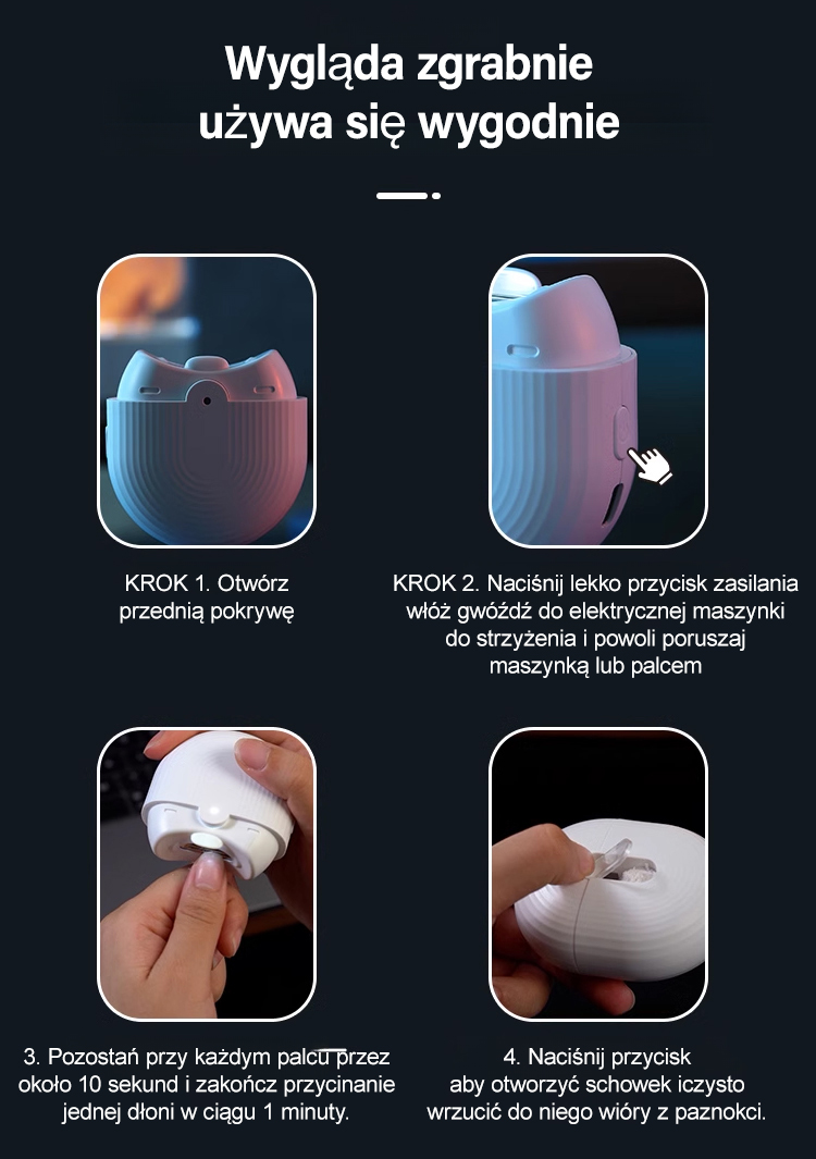 Obcinacz do paznokci jest napędzany silnikiem, co zapewnia szybkie i bezpieczne przycinanie. Jego wydajne ostrze tnące nadaje się do różnych rodzajów paznokci, dzięki czemu łatwo uzyskać zadbane i piękne paznokcie.