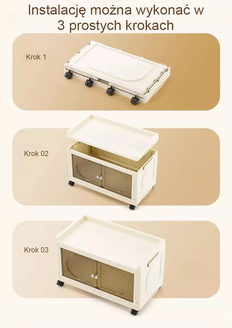 Do montażu szafki nie są potrzebne żadne narzędzia. Można ją łatwo złożyć i rozłożyć, co zapewnia elastyczne rozwiązanie do przechowywania, oszczędzające miejsce i czas.